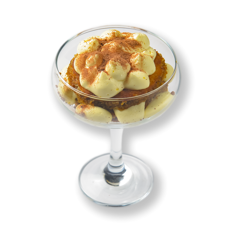 ВЕРШКОВИЙ МУС З СИРОМ МАСКАРПОНЕ, БІСКВІТНЕ ПЕЧИВО З КАВОВО-КОНЬЯЧНОЮ ПРОПИТКОЮ