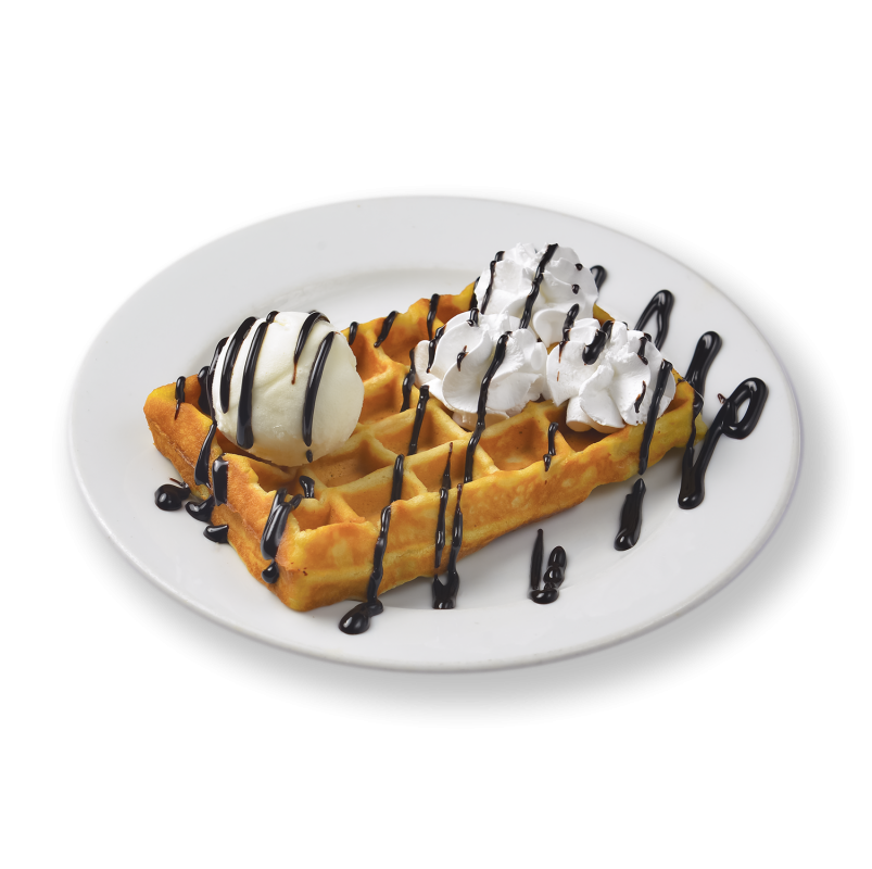 ВІДЕНСЬКІ ВАФЛІ З МОРОЗИВОМ ТА ВЕРШКАМИ, ШОКОЛАДНИЙ ТОПІНГ