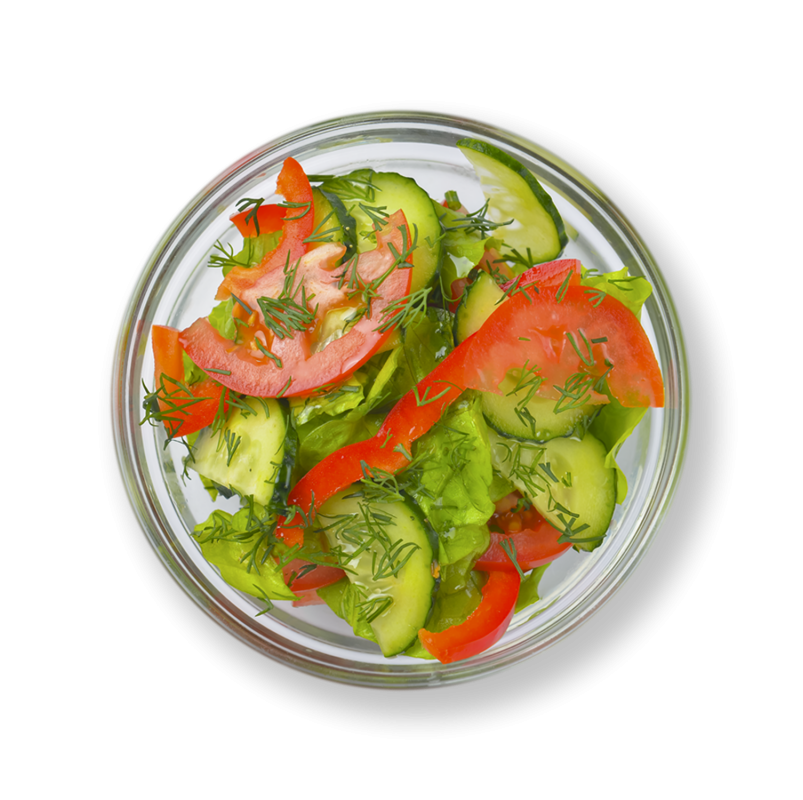 ПЕРЕЦЬ БОЛГАРСЬКИЙ, ПОМІДОР, ОГІРОК СВІЖИЙ, РЕДИС (ЗА СЕЗОНОМ), ЦИБУЛЯ ЗЕЛЕНА, ЛИСТ САЛАТУ, СОНЯШНИКОВА ОЛІЯ